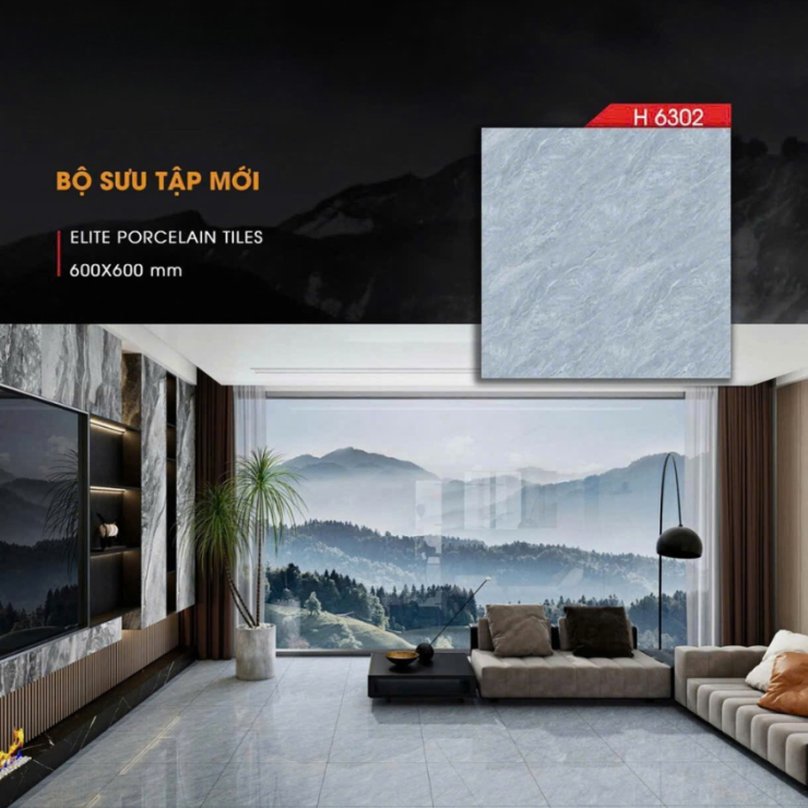 • Gạch 600x600 KARPO H6302 dòng Elite Porcelain cao cấp, vân đá xám hiện đại, bề mặt bóng sang trọng, phù hợp lát nền phòng khách, chung cư, showroom và công trình cao cấp.