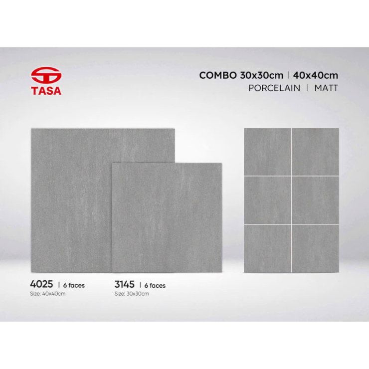 Gạch Porcelain Matt Xám TASA – Combo 30x30 & 40x40 (Mã 3145 – 4025)